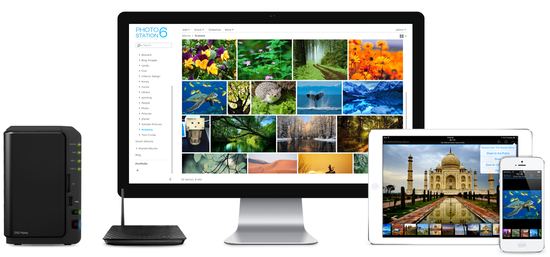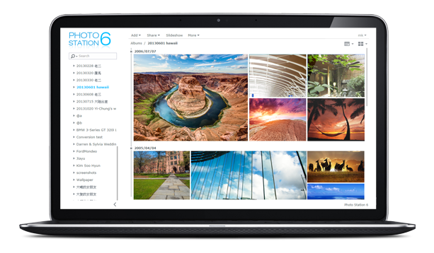 通過 Photo Station,你可以建立在線相簿或 blog,分享給朋友及客戶。只要容量許可,你可以上傳所有的照片,而不再受第三方服務的存儲空間限制,并能輕松管理照片和位置卷標,或把相片及視頻分享至 Facebook、Twitter、Flickr、Google+ 和 YouTube。